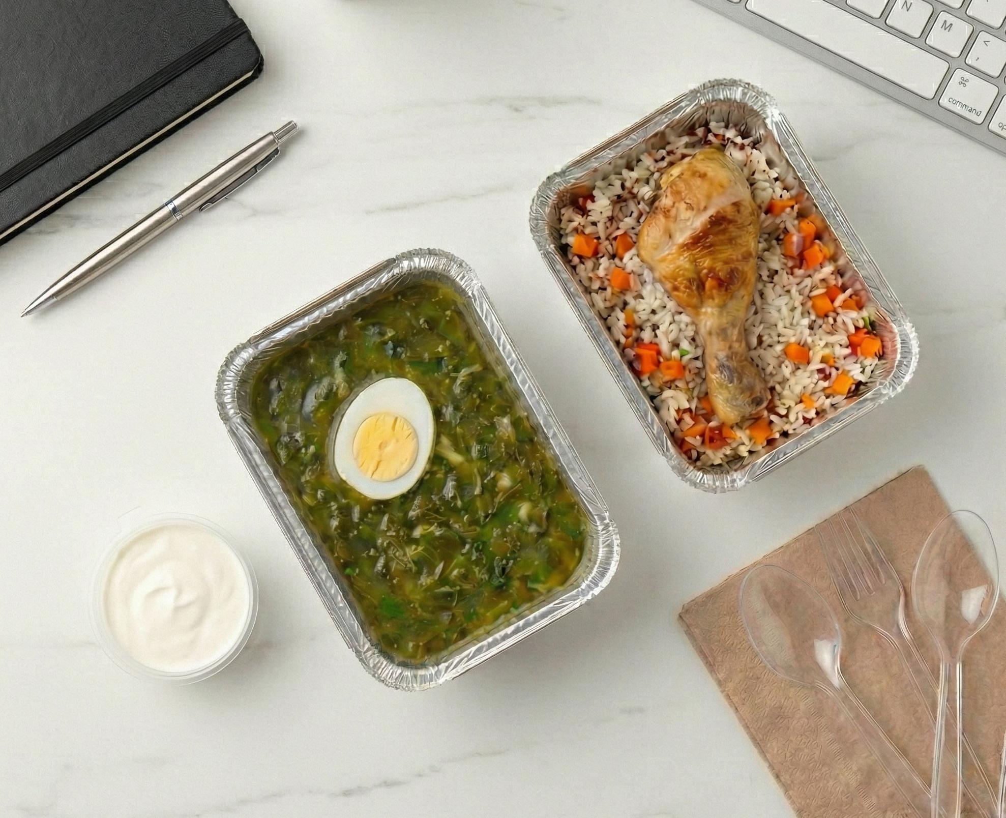 Еду привозят ежедневно в индивидуальных контейнерах с набором столовых приборов.